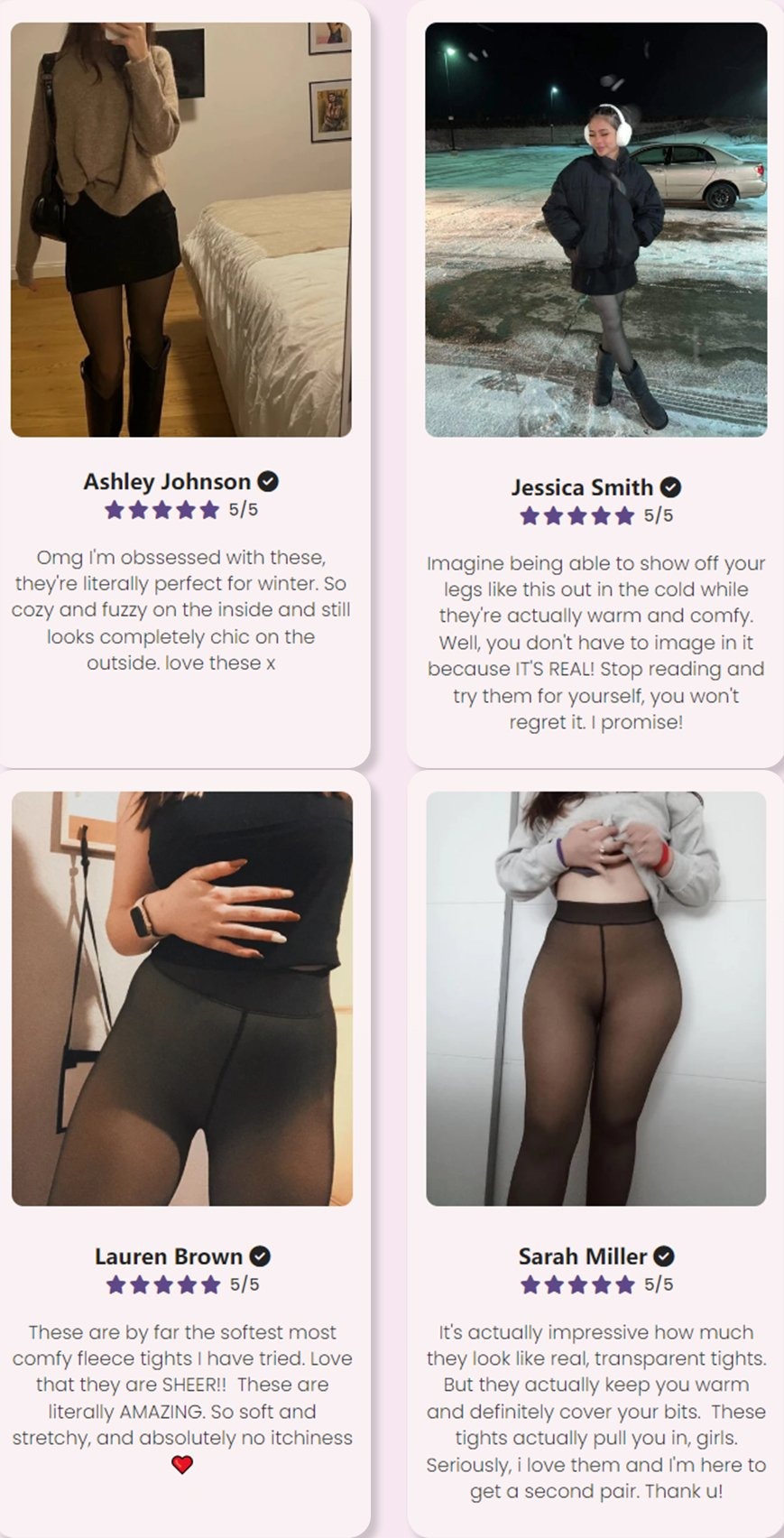 Our Flawless Legs Pantyhose is innovative. It looks translucent and slim from the outside but fills with warm plush in the inside.